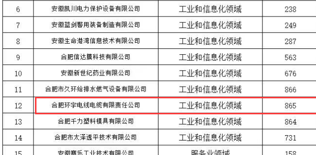 近日,安徽省經濟和信息化廳發(fā)布了 2023年安徽省“專精特新”企業名單,合肥環(huán)宇電線電纜成功入選,認證編號865.